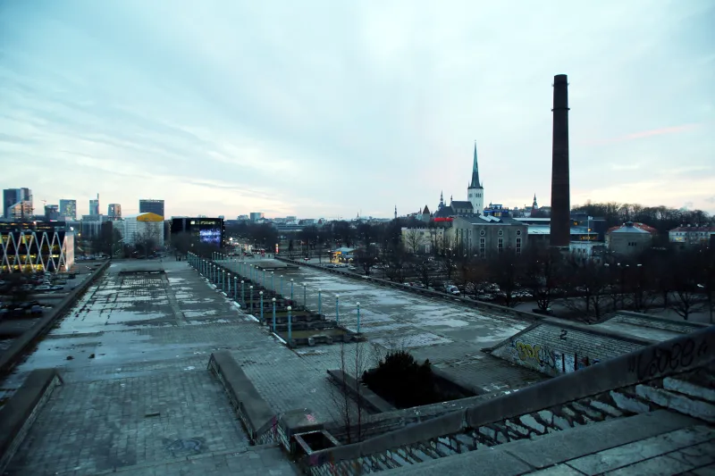 Relique des JO de 1980, l’imposant complexe soviétique en béton offre une vue imprenable sur Tallinn tant côté mer, sur le golfe de Finlande, que côté ville. Son esplanade immense et à l’abandon - les lampadaires bleus d’époque ne fonctionnent plus la nuit - recouvre une salle de concert de 5000 places. Elle sert encore sporadiquement et on peut la visiter en s’y prenant en avance en contactant Visit Estonia. L’Union Soviétique avait fait bâtir cette structure pour admirer les épreuves des régates mais aussi pour rappeler à l’Occident -juste en face, en Finlande - sa puissante présence dans le golfe.