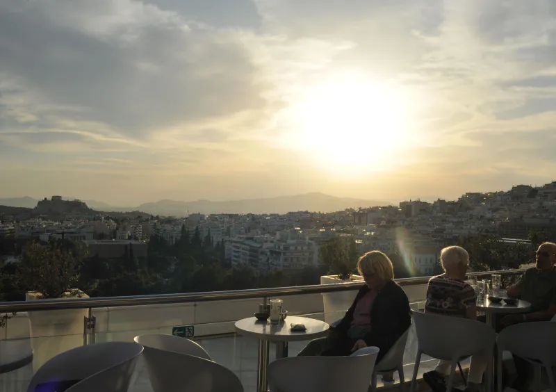 Parmi la kyrielle de rooftops athéniens, seule une petite poignée se targue d'offrir un panorama à 360°C sur la ville. Pour goûter à ce luxe, à l'heure de l'apéro, l'un des meilleurs spots reste le Galaxy Bar, juché au 12e étage de l'hôtel Hilton, dans le quartier de Kolonaki. Autre belvédère de choix, situé à deux pas, l'esplanade de la chapelle d'Agios Georgios, sur la colline de Lycabette. Elle se gravit via un funiculaire ou mieux, à pied, pour s'enivrer des effluves des pins.