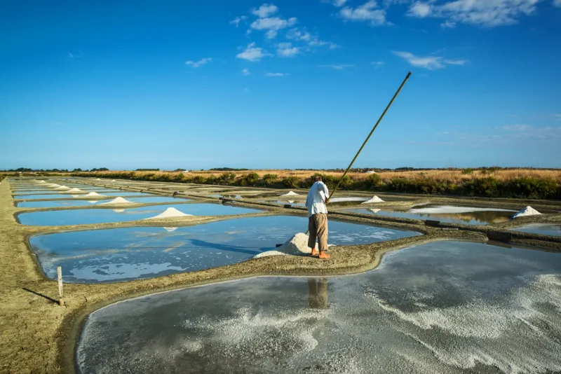 Les Noirmoutrins cultivent l’or blanc depuis le Vesiècle, époque où les moines transformèrent les marais humides de l’île en marais salants – ils occupent aujourd’hui près du tiers de la surface de l’île. L’été, la centaine de sauniers en activité récoltent à la main gros sel, sel fin, fleur de sel et salicorne. Depuis Noirmoutier-en-l’Ile, on emprunte la piste cyclable qui mène au joli village de l’Epine pour observer ce damier miroitant où s’abritent de nombreuses d’espèces d’oiseaux, insectes et petits mammifères. Bucolique et instructif!
