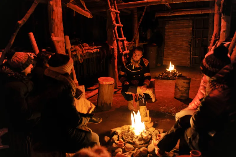 Ecouter des légendes amérindiennes dans une habitation traditionnelle Huron