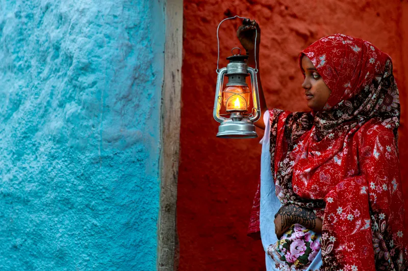 "Les murs colorés de la ville d'Harar, en Ethiopie, attirent les photographes du monde entier. J'ai eu la chance de photographier cette jeune fille avec cette toile de fond colorée. "©Gil Kreslavsky/Sony Photography Awards